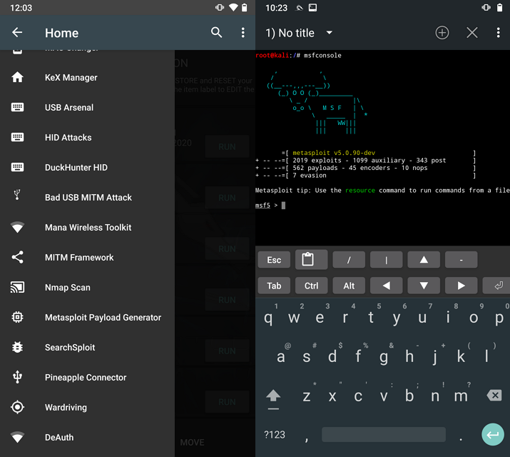 앱 안에는 다양한 진단 도구들이 있으며 터미널에서metasploit도 실행할 수 있다.
