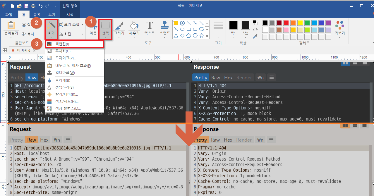 - Ctrl + A 혹은 반전 시킬 부분 선택